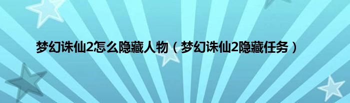 大家好,小问来为大家解答以上问题。梦幻诛仙2怎么隐藏人物,梦幻诛仙2隐藏任务这个很多人还不知道,现在让我们一起来看看吧!