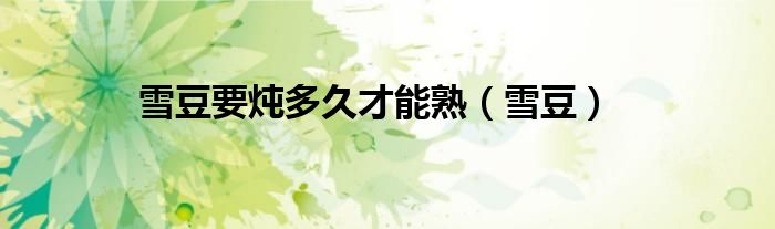 以上就是【雪豆要炖多久才能熟,雪豆】相关内容。