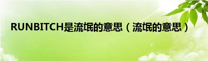 以上就是【RUNBITCH是流氓的意思,流氓的意思】相关内容。