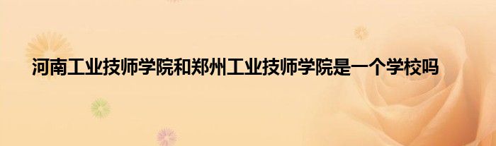 以上就是【河南工业技师学院和郑州工业技师学院是一个学校吗】相关内容。