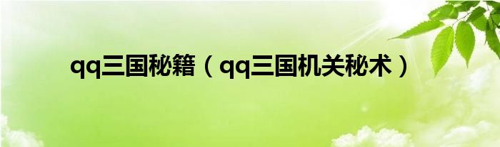 大家好,小问来为大家解答以上问题。qq三国秘籍,qq三国机关秘术这个很多人还不知道,现在让我们一起来看看吧!