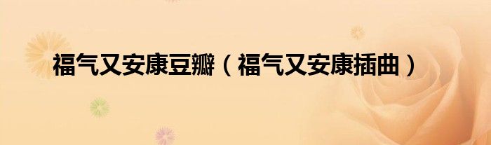福气又安康豆瓣(福气又安康插曲)