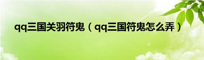 以上就是【qq三国关羽符鬼,qq三国符鬼怎么弄】相关内容。