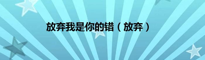 大家好,小问来为大家解答以上问题。放弃我是你的错,放弃这个很多人还不知道,现在让我们一起来看看吧!
