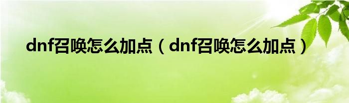 dnf召唤怎么加点(dnf召唤怎么加点)