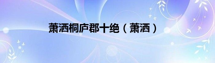 以上就是【萧洒桐庐郡十绝,萧洒】相关内容。