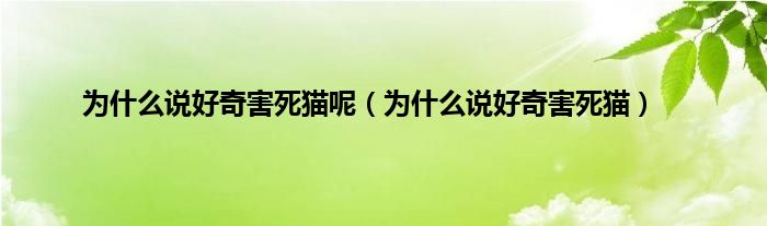 为什么说好奇害死猫呢(为什么说好奇害死猫)