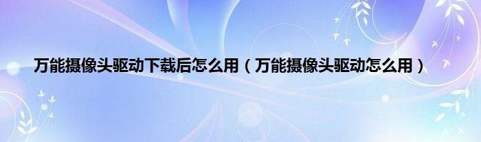 以上就是【万能摄像头驱动下载后怎么用,万能摄像头驱动怎么用】相关内容。
