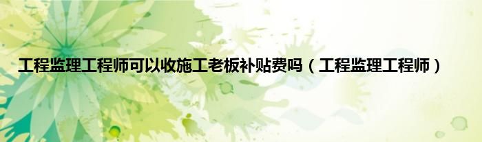 以上就是【工程监理工程师可以收施工老板补贴费吗,工程监理工程师】相关内容。