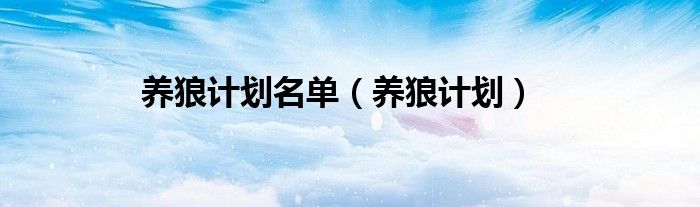 大家好,小问来为大家解答以上问题。养狼计划名单,养狼计划这个很多人还不知道,现在让我们一起来看看吧!