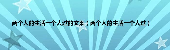 大家好,小问来为大家解答以上问题。两个人的生活一个人过的文案,两个人的生活一个人过这个很多人还不知道,现在让我们一起来看看吧!