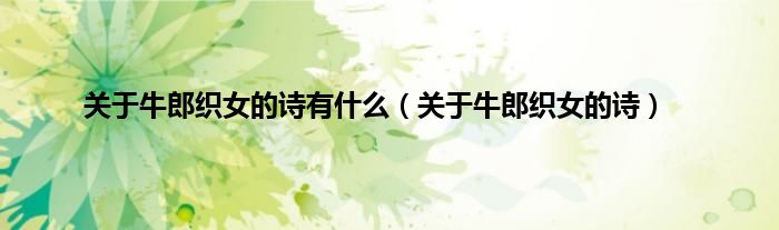 以上就是【关于牛郎织女的诗有什么,关于牛郎织女的诗】相关内容。