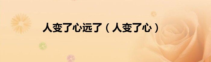 大家好,小问来为大家解答以上问题。人变了心远了,人变了心这个很多人还不知道,现在让我们一起来看看吧!