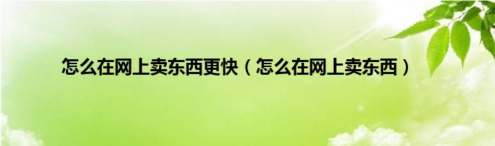 以上就是【怎么在网上卖东西更快,怎么在网上卖东西】相关内容。