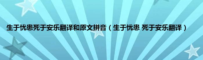 大家好,小问来为大家解答以上问题。生于忧患死于安乐翻译和原文拼音,生于忧患 死于安乐翻译这个很多人还不知道,现在让我们一起来看看吧!