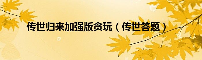 大家好,小问来为大家解答以上问题。传世归来加强版贪玩,传世答题这个很多人还不知道,现在让我们一起来看看吧!