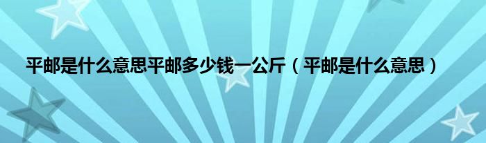 以上就是【平邮是什么意思平邮多少钱一公斤,平邮是什么意思】相关内容。