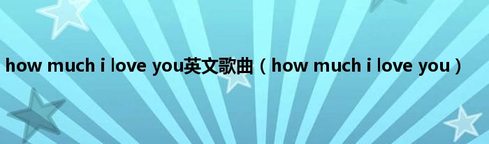 大家好,小问来为大家解答以上问题。how much i love you英文歌曲,how much i love you这个很多人还不知道,现在让我们一起来看看吧!