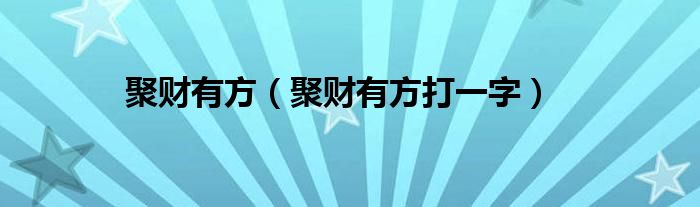 以上就是【聚财有方,聚财有方打一字】相关内容。