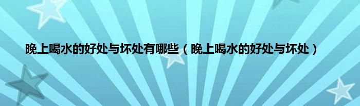 本文,晚上喝水的好处与坏处有哪些,晚上喝水的好处与坏处到此就分享完毕,希望对大家有所帮助。