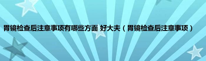 大家好,胃镜检查后注意事项有哪些方面 好大夫,胃镜检查后注意事项很多人还不知道,现在让我们一起来看看吧!