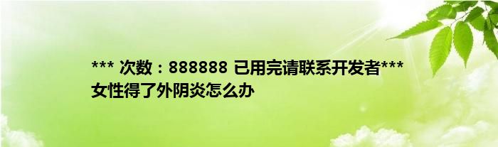 本文,*** 次数:888888 已用完请联系开发者*** 女性得了外阴炎怎么办到此就分享完毕,希望对大家有所帮助。