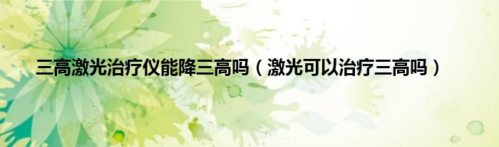本文,三高激光治疗仪能降三高吗,激光可以治疗三高吗到此就分享完毕,希望对大家有所帮助。