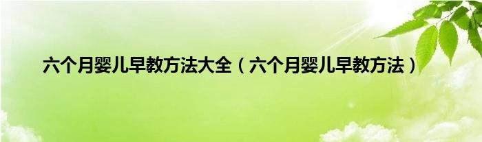 本文,六个月婴儿早教方法大全,六个月婴儿早教方法到此就分享完毕,希望对大家有所帮助。