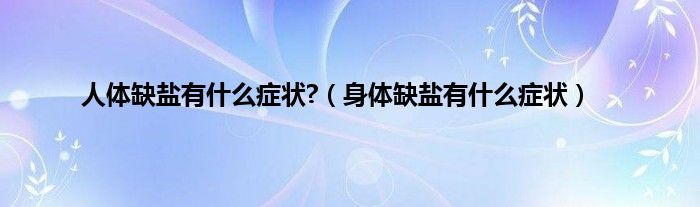 本文,人体缺盐有什么症状?,身体缺盐有什么症状到此就分享完毕,希望对大家有所帮助。