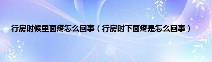 本文,行房时候里面疼怎么回事,行房时下面疼是怎么回事到此就分享完毕,希望对大家有所帮助。
