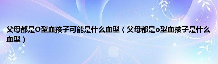 本文,父母都是O型血孩子可能是什么血型,父母都是o型血孩子是什么血型到此就分享完毕,希望对大家有所帮助。