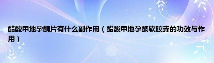 大家好,醋酸甲地孕酮片有什么副作用,醋酸甲地孕酮软胶囊的功效与作用很多人还不知道,现在让我们一起来看看吧!