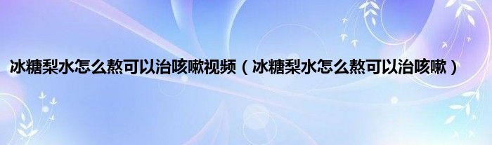 冰糖梨水怎么熬可以治咳嗽视频(冰糖梨水怎么熬可以治咳嗽)
