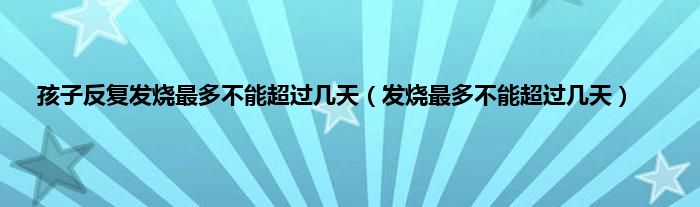 本文,孩子反复发烧最多不能超过几天,发烧最多不能超过几天到此就分享完毕,希望对大家有所帮助。