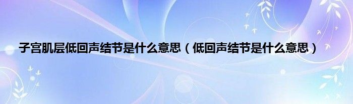 本文,子宫肌层低回声结节是什么意思,低回声结节是什么意思到此就分享完毕,希望对大家有所帮助。
