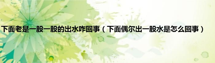 本文,下面老是一股一股的出水咋回事,下面偶尔出一股水是怎么回事到此就分享完毕,希望对大家有所帮助。