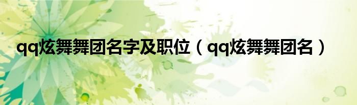 大家好,小问来为大家解答以上问题。qq炫舞舞团名字及职位,qq炫舞舞团名这个很多人还不知道,现在让我们一起来看看吧!