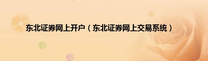 大家好,小问来为大家解答以上问题。东北证券网上开户,东北证券网上交易系统这个很多人还不知道,现在让我们一起来看看吧!