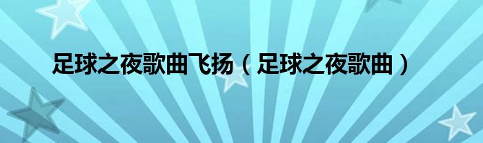大家好,小问来为大家解答以上问题。足球之夜歌曲飞扬,足球之夜歌曲这个很多人还不知道,现在让我们一起来看看吧!