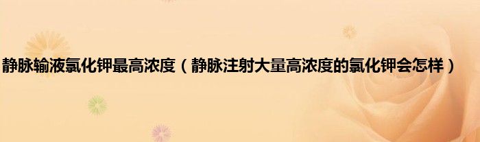 本文,静脉输液氯化钾最高浓度,静脉注射大量高浓度的氯化钾会怎样到此就分享完毕,希望对大家有所帮助。