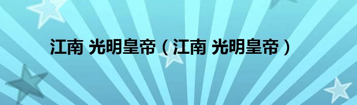 大家好,小问来为大家解答以上问题。江南 光明皇帝,江南 光明皇帝这个很多人还不知道,现在让我们一起来看看吧!