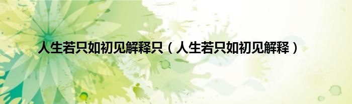 以上就是【人生若只如初见解释只,人生若只如初见解释】相关内容。