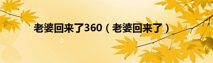 大家好,小问来为大家解答以上问题。老婆回来了360,老婆回来了这个很多人还不知道,现在让我们一起来看看吧!