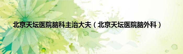北京天坛医院脑科主治大夫(北京天坛医院脑外科)