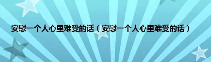 安慰一个人心里难受的话(安慰一个人心里难受的话)