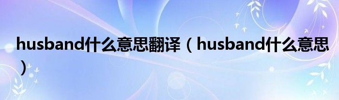 大家好,小问来为大家解答以上问题。husband什么意思翻译,husband什么意思这个很多人还不知道,现在让我们一起来看看吧!