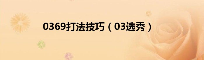 大家好,小问来为大家解答以上问题。0369打法技巧,03选秀这个很多人还不知道,现在让我们一起来看看吧!