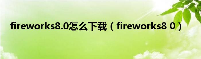 以上就是【fireworks8.0怎么下载,fireworks8 0】相关内容。
