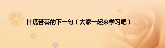 大家好,甘瓜苦蒂的下一句,大家一起来学习吧很多人还不知道,现在让我们一起来看看吧!