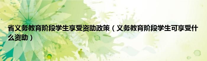 本文,省义务教育阶段学生享受资助政策,义务教育阶段学生可享受什么资助到此就分享完毕,希望对大家有所帮助。
